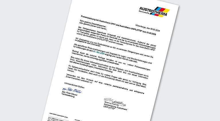 Preisanpassung bei Austrotherm XPS und UNIPLATTE zum 01.05.2026