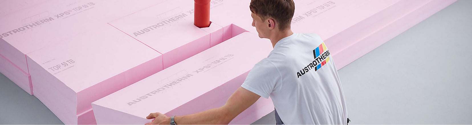 Wärmedämmplatte mit verbesserten Wärmedämmeigenschaften aus Extruderschaum im Thermobonding Verfahren mit glatter Oberfläche und Stufenfalz.