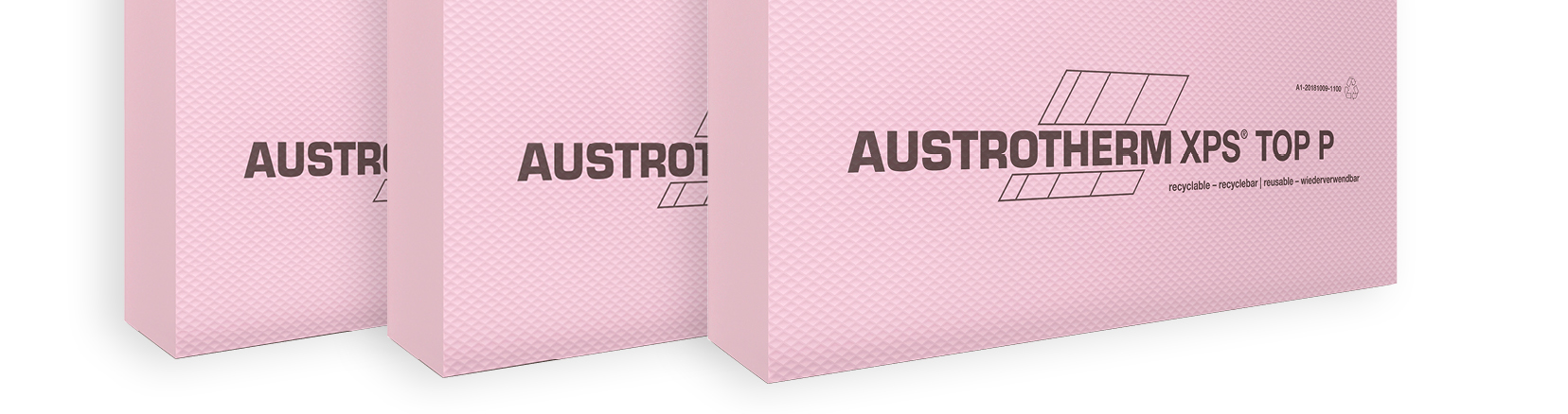 Druckfeste Wärmedämmplatte mit verbesserten Wärmedämmeigenschaften aus Extruderschaum im Thermobonding Verfahren mit geprägter Oberfläche und gerade Kante.