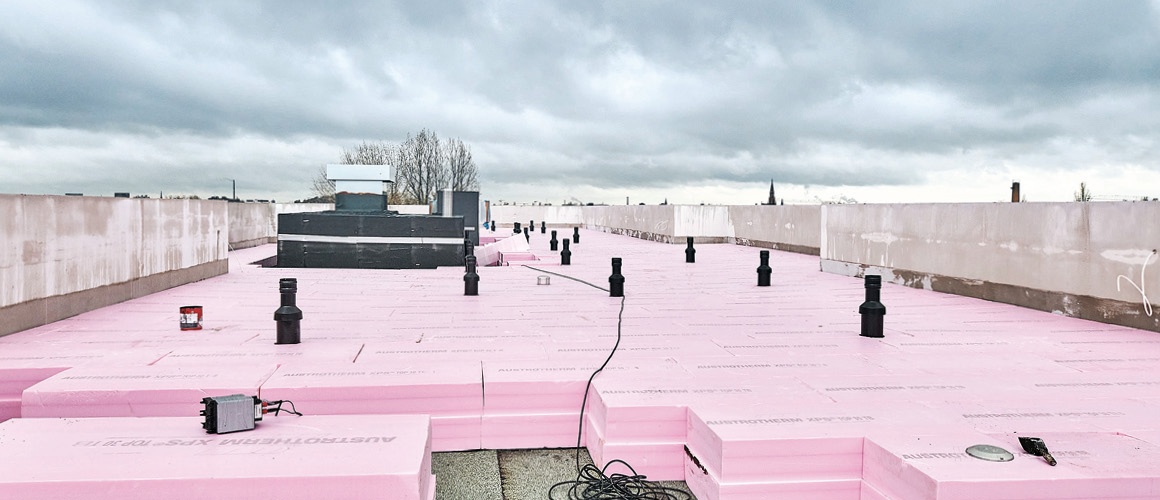 Das energieeffiziente Apartmenthaus wurde nach dem KfW-Standard „Effizienzhaus 40 Plus“ errichtet und übertrifft die Vorgaben deutlich. Auf dem Umkehrdach sorgt eine 20 cm starke Austrotherm XPS®-Dämmung für optimale Wärmedämmung und dauerhafte Sicherheit. So erreicht das Gebäude einen energetischen Wert, der rund 35 % unter dem geforderten Grenzwert liegt.