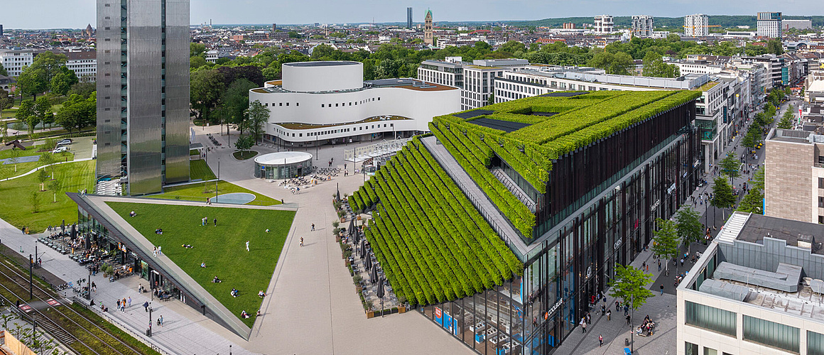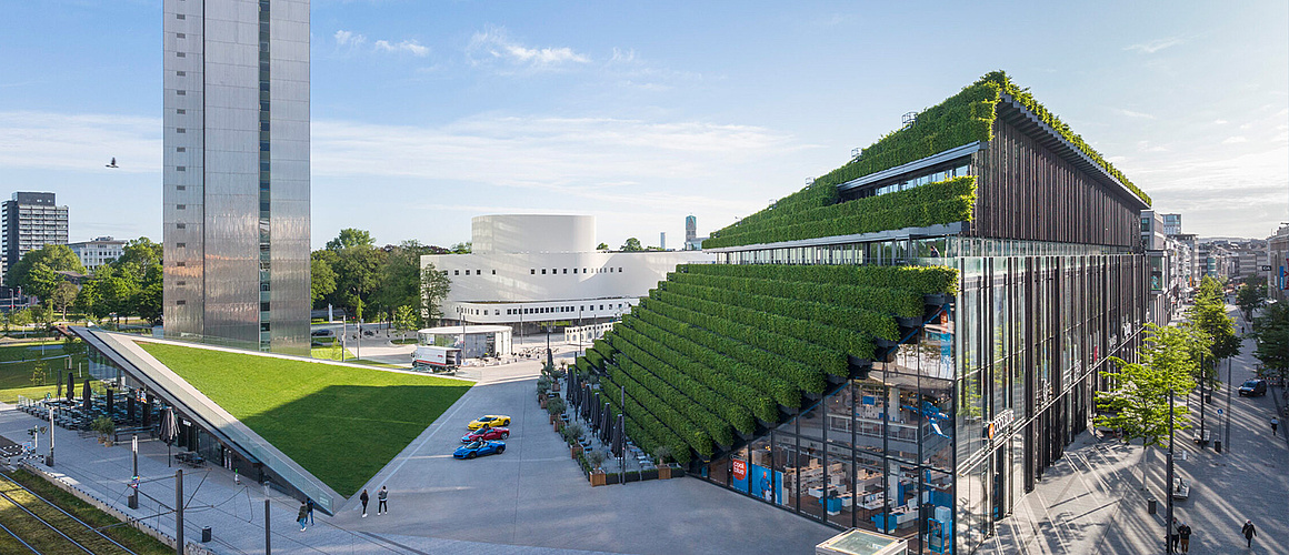 Mit seiner spektakulären, begrünten Dachlandschaft setzt der Neubau „KII“ ein markantes Zeichen in der Düsseldorfer Innenstadt. Für das Umkehrdach mit rund 8.000 Laufmetern Heckenpflanzen kamen Austrotherm XPS® Dämmplatten zum Einsatz – druckfest, wasserbeständig und ideal für die Kombination aus Abdichtung und Begrünung. So entstand ein urbanes Highlight, das Architektur und Nachhaltigkeit perfekt verbindet.