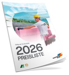 Auf austrotherm.de finden Sie die Preisliste – unser Sortiment 2026 – als interaktives Online‑PDF mit weiterführenden Links sowie alle Daten im Excel‑Format.